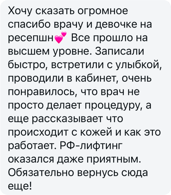 Эффект от радиоволновой подтяжки кожи со временем только накапливается и будет радовать вас еще несколько лет.
