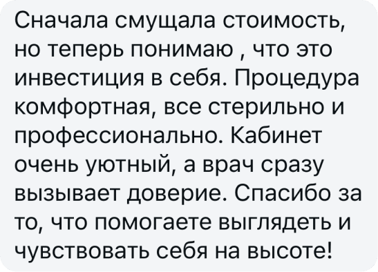 Цены, указанные на сайте, приведены как справочная информация и не являются публичной офертой. Изменение цен возможно в любое время и без предупреждения. Актуальную стоимость услуг можно узнать у администраторов. Имеются противопоказания, необходима предварительная консультация у врача