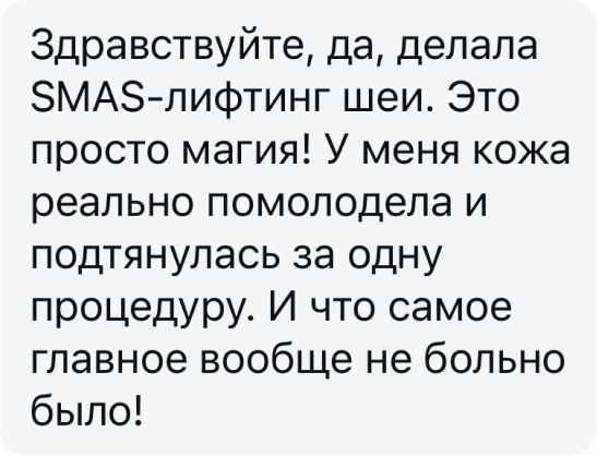 Обычно достаточно всего одной процедуры ультразвукового лифтинга лица или тела. Повторный курс SMAS-лифтинга стоит проводить раз в год.