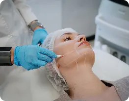 Подготовка: Врач тщательно очищает кожу и наносит разметку, по которой будет проходить аппаратом. Также он наносит на кожу специальный гель.